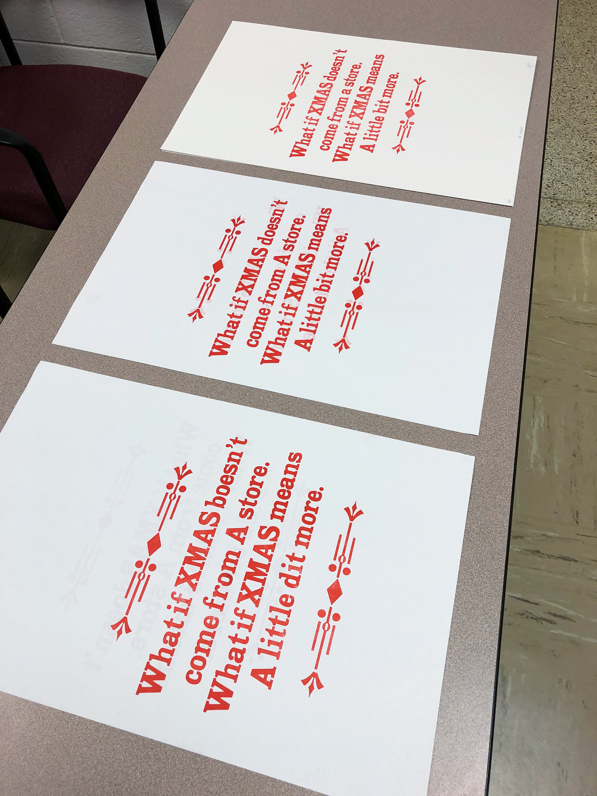 I got busier the semester, so doing this meant a lot to me as a maker. Being able to handle both the wood and metal type, and manually crank the prints off the Vandercook press was a definite stress-reliever. You can see our conceptual mishaps below.