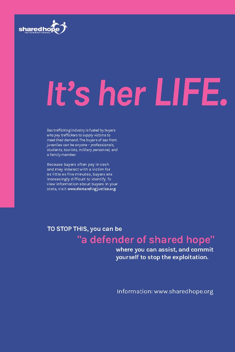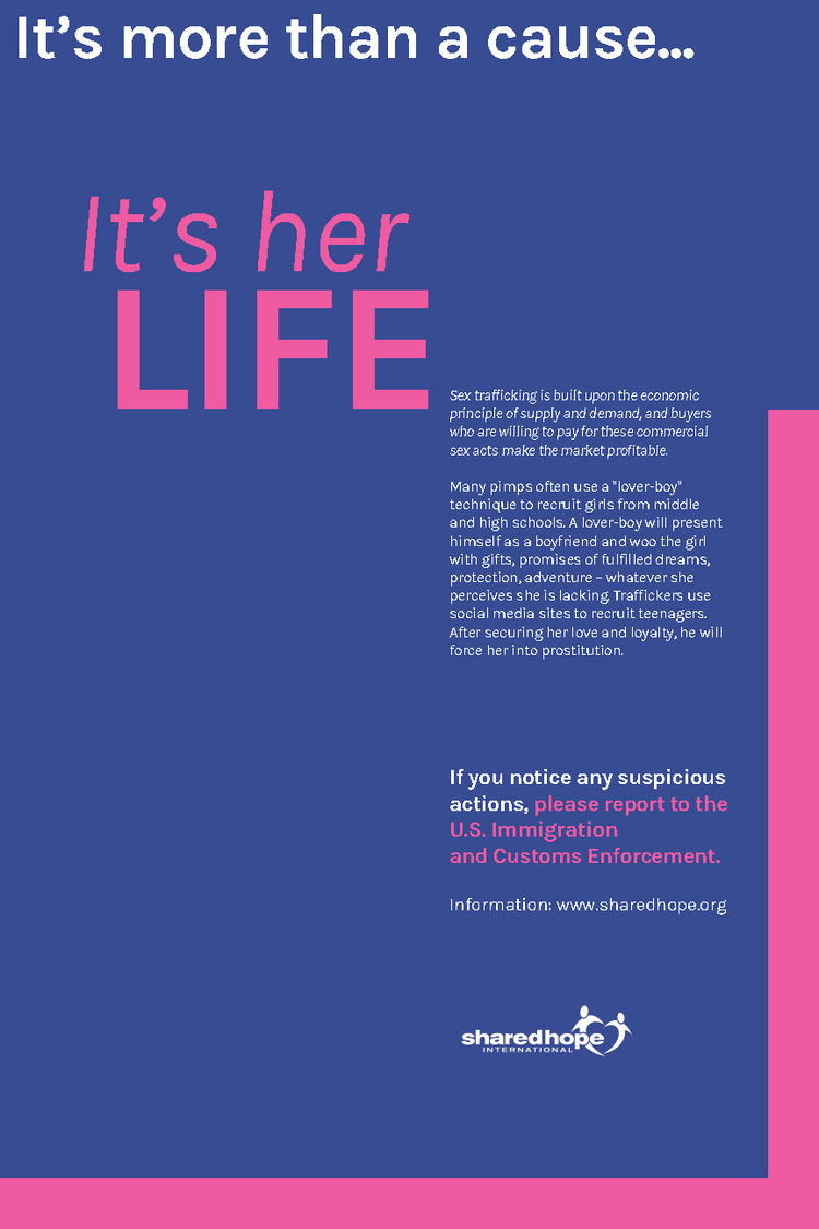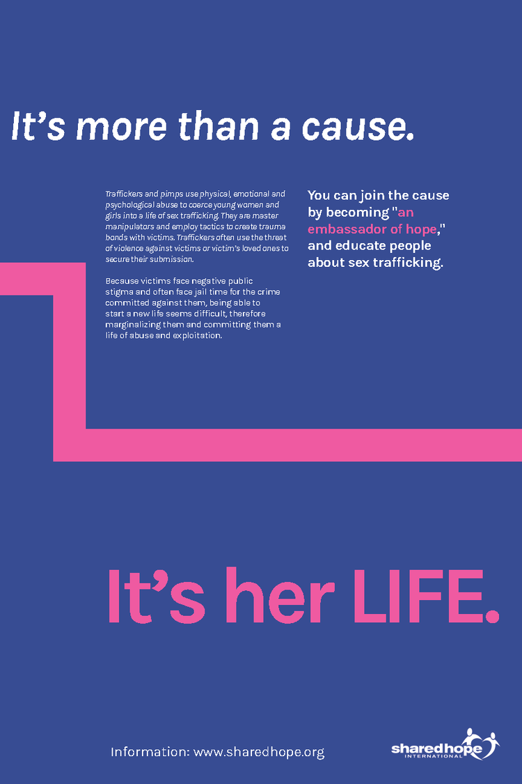 Shared Hope International is a non-profit organization, that helps educate people about exploiting sex trafficking. They are dedicated to bringing an end to sex trafficking through our three-pronged approach – prevent, restore, and bring justice. These posters are to inform on how to join the cause.